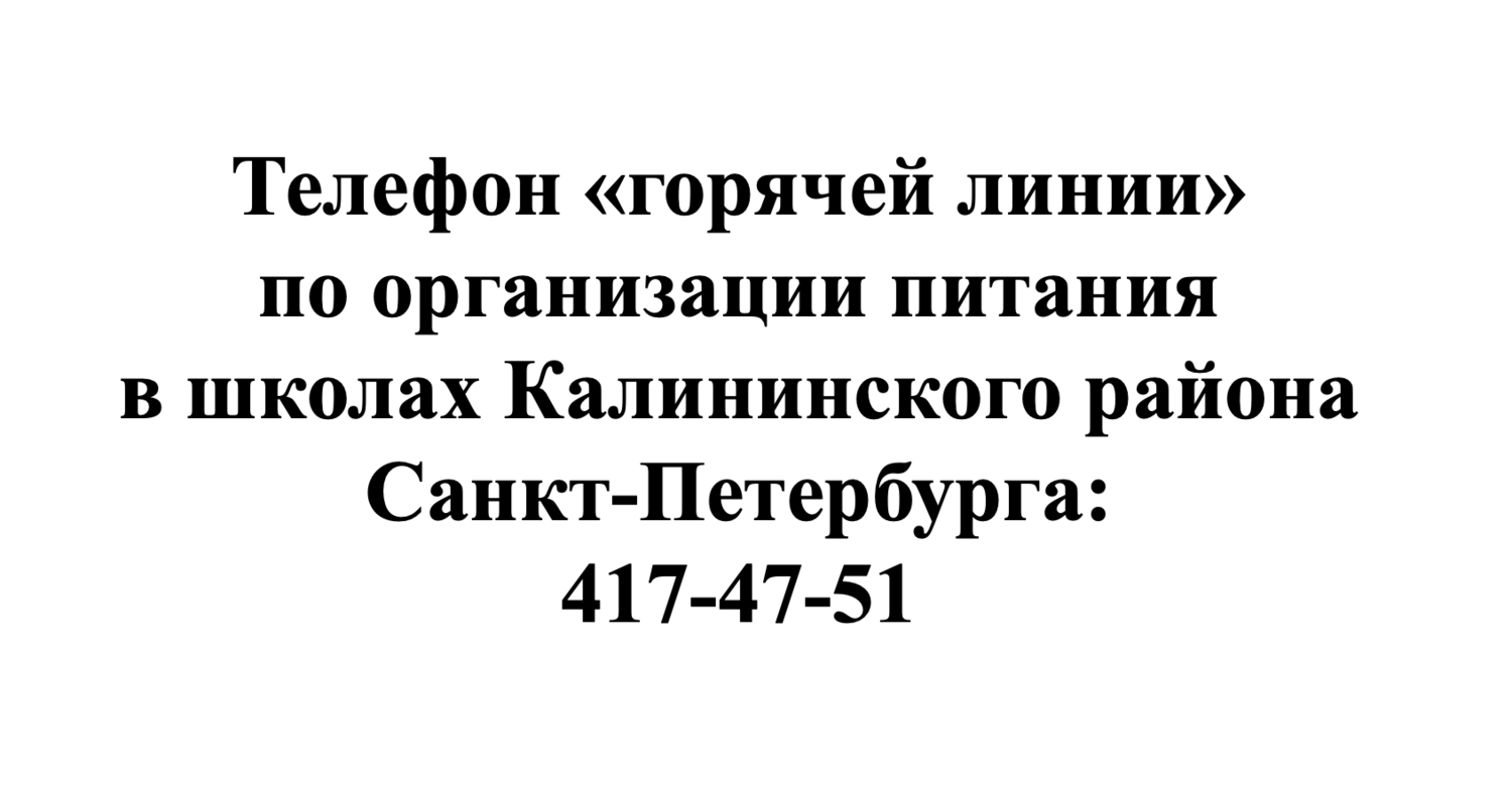 Сведения о «горячей линии» Санкт-Петербургапо вопросам питания