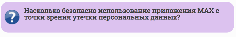 Мессенджер MAX соответствует требованиям законодательства о защите персональных данных, использует современные технологии шифрования и контроля доступа, что обеспечивает высокий уровень безопасности.