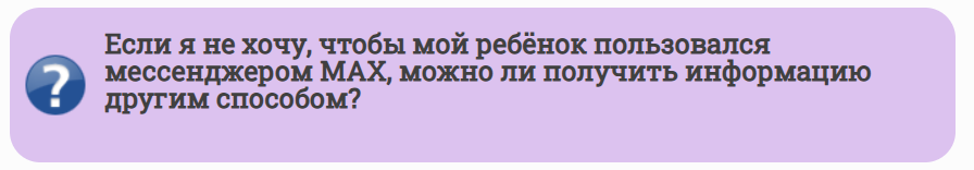 Для вас остаются доступными и альтернативные каналы связи по всем вопросам обучения и воспитания вашего ребёнка, это электронная почта, СМС и звонки учителю. Тем не менее, мы рекомендуем использовать национальный мессенджер MAX, чтобы получать всю информацию оперативно и в одном месте наиболее удобным способом, не пропуская важных сообщений